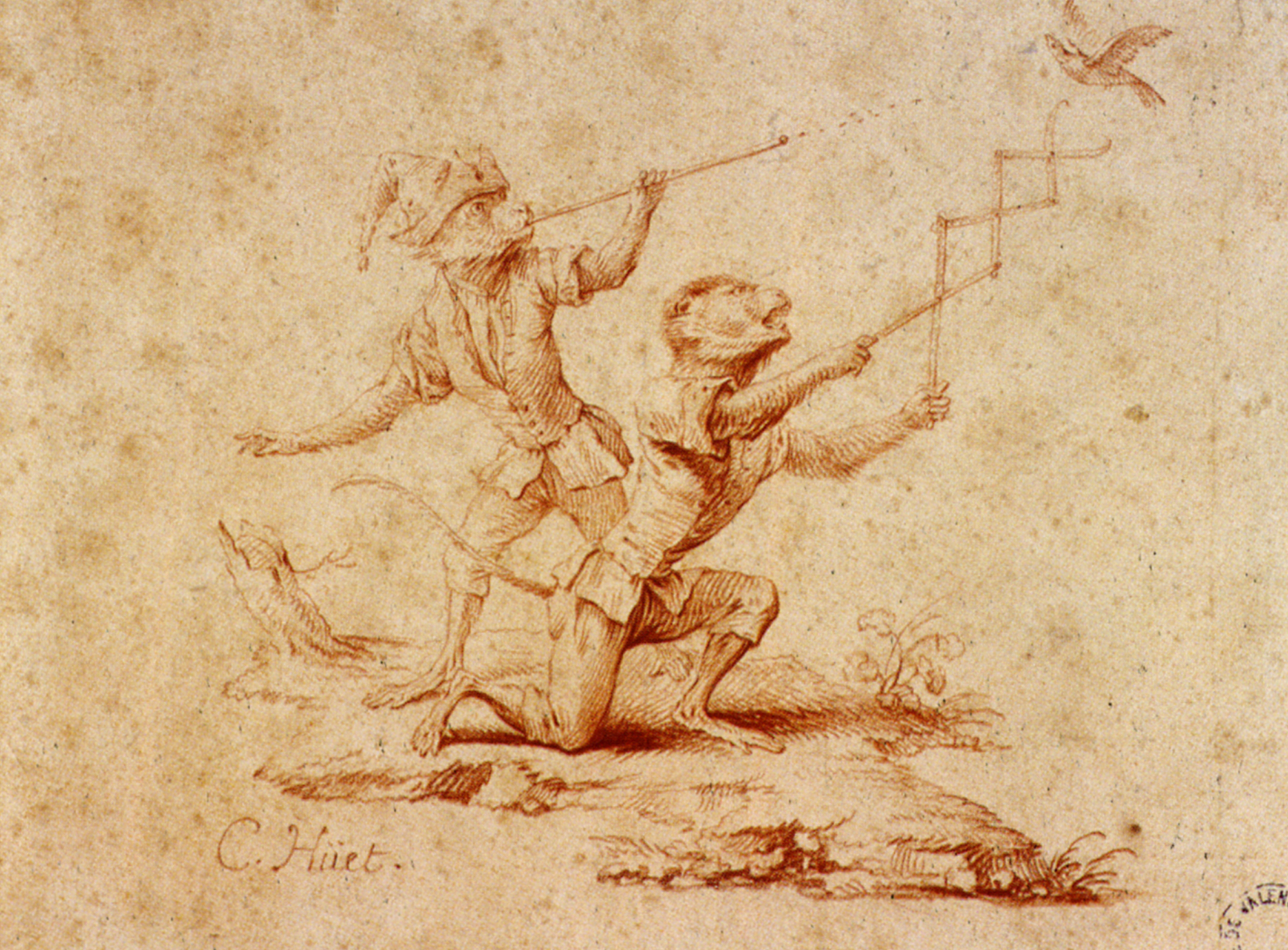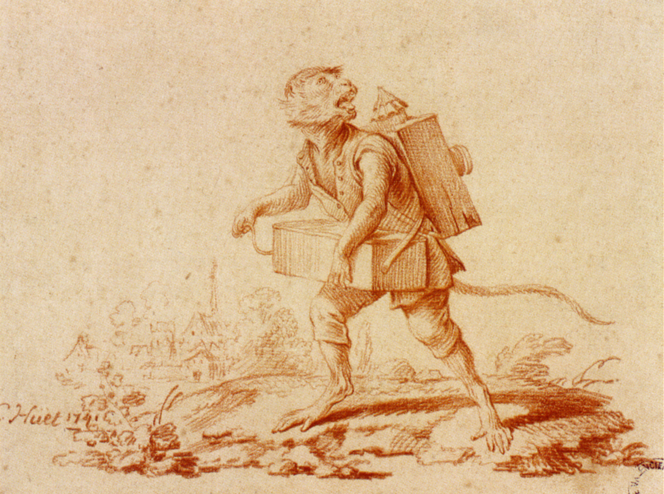 Les singeries, très appréciées à l’époque, furent, au même titre, associées aux grotesques, à l’image de celles que Christophe Huet peignit, entre 1735 et 1740, au sein de deux ensembles décoratifs majeurs du XVIIIe siècle : la Grande et la Petite Singerie du château de Chantilly, respectivement situées au 1er étage et au rez-de-chaussée des appartements des princes de Condé, cousins du roi Louis XV et princes du sang.