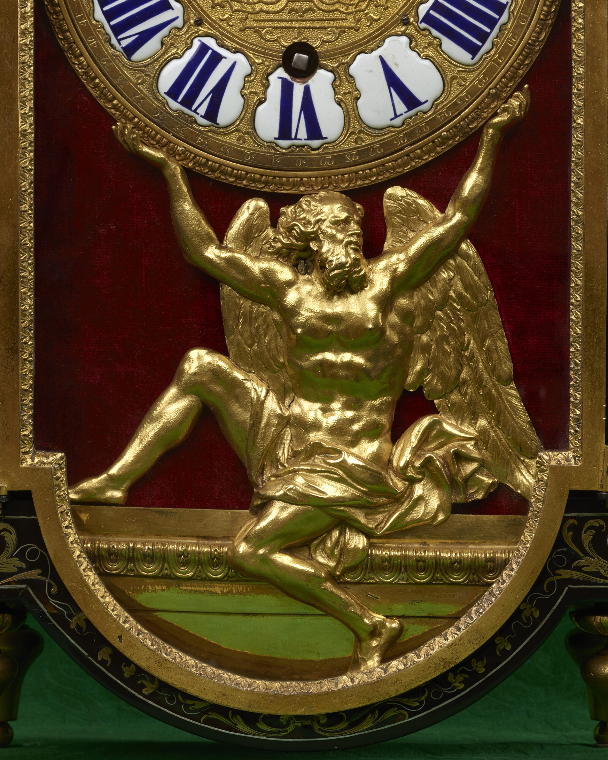 Detail of the top of a model known as “Day and Night clock” by André-Charles Boulle, the dial and the movement are here signed Gilbert /A Paris ; former collection of Etienne Perrinet de Jars (1670-1762).
