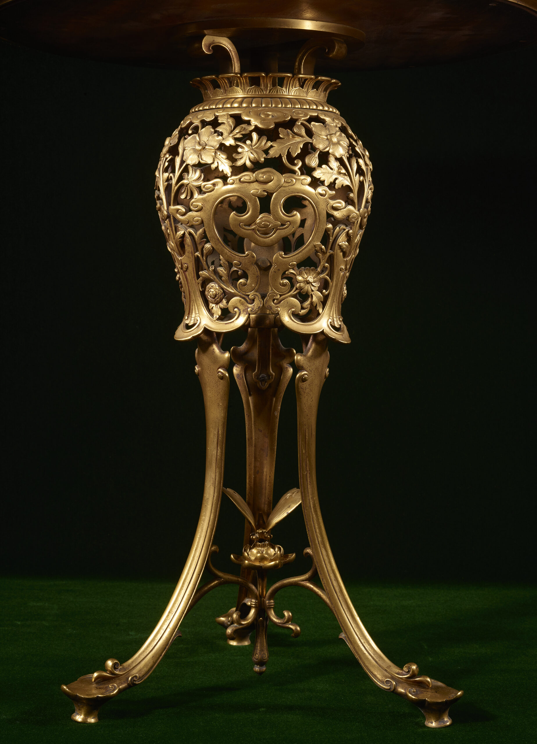 Chiselled and gilt bronze; cloisonné enamels.