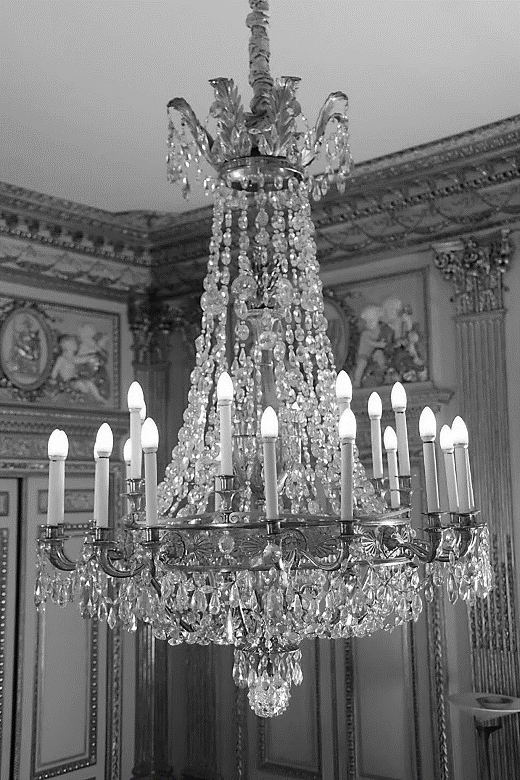 In the second half of the 20th century, our chandelier was acquired by Baron Élie de Rothschild (1917-2007), who placed it in one of the salons of the hôtel Masseran in Paris, located at no. 11 rue Masseran in the 7th arrondissement of Paris. Located close to the Invalides, the hôtel Masseran was built in 1787 for Carlo Sebastiano Ferrero Fieschi (1760-1826), Prince Masserano, by the architect Alexandre-Théodore Brongniart (1739-1813), who designed the Palais de la Bourse (the Paris Stock Exchange), and who lived a stone’s throw away on the Boulevard des Invalides and was also the owner of the land on which the hôtel was built. A Grandee of Spain and member of the illustrious Genoese House of Fieschi, Carlo Sebastiano was the son of Vittorio Filippo Ferrero Fieschi (1713-1777), Prince Masserano, and Princess Charlotte Louise de Rohan (1722-1786), daughter of the Duke of Montbazon.