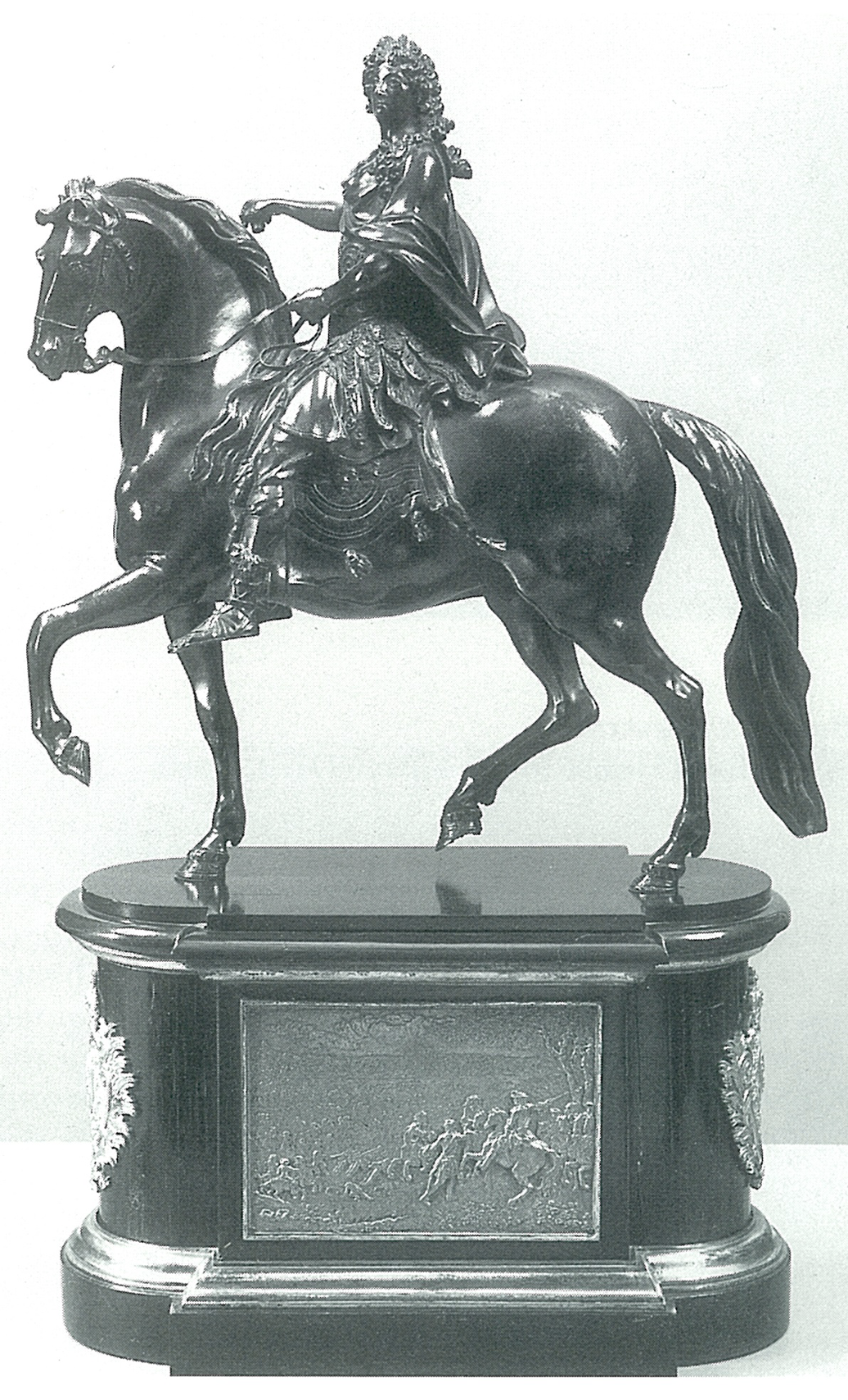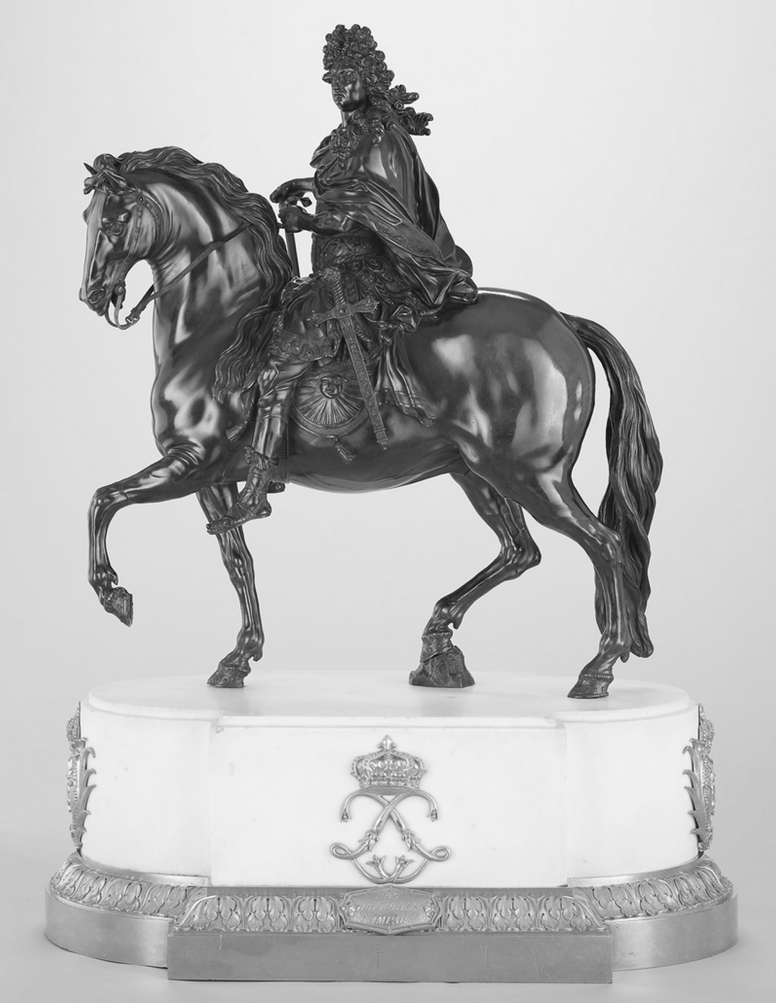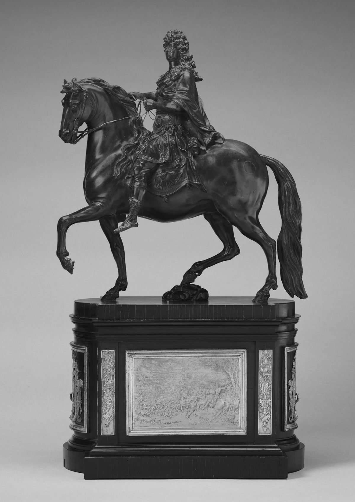 LITERATURE: Stéphane Faniel, Le Dix-septième siècle français, Collection Connaissance des Arts, Paris, 1958, p. 163, repr. ; Hélène Demoriane, « L’importance du socle, Tout objet d’art gagne en valeur décorative s’il est bien soclé », Connaissance des Arts, n° 108, février 1961, p. 70, fig. 15 ; Lorenz Seelig, Studien zu Martin van den Bogaert gen. Desjardins (1637-1694), typewritten doctoral thesis, Munich, Ludwig-Maximilian University, 1980, p. 537, cat. n° LIV/24G ; M. Martin, Les Monuments équestres de Louis XIV. Une grande entreprise de propagande monarchique, Paris, 1986, p. 143, fig. 79-80, repr.; François Souchal, French Sculptors of the 17th and 18th centuries, The reign of Louis XIV, Volume * , A-F, London, 1977, p. 258-259, cat. n° 47, and Supplementary Volume ****, A-Z, London, 1993, p. 74-76, cat. n° 47 (Additions) ; Geneviève Bresc-Bautier, Guilhem Scherf, Bronzes français de la Renaissance au Siècle des Lumières, exhibition catalogue, Paris, 2008, p. 318-321.