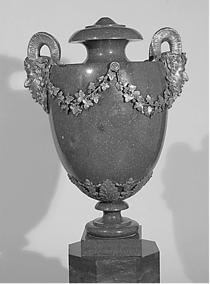 Four of the six vases adorned the Tauride Palace in 1790, a vast palace built by the architect Ivan Starov and a gift from the Tsarina to Prince Grigory Potemkin (1739-1791). Potemkin was one of the most influential figures at the Court: a marshal and governor of Tauride – a province in the South of the Russian Empire -, he was appointed Minister of War in 1784 and was Catherine’s longtime lover, who was rumored to have married her in secret. By the time his palace, one of the most important in Saint-Petersburg, was built, Potemkin was at the height of his glory.