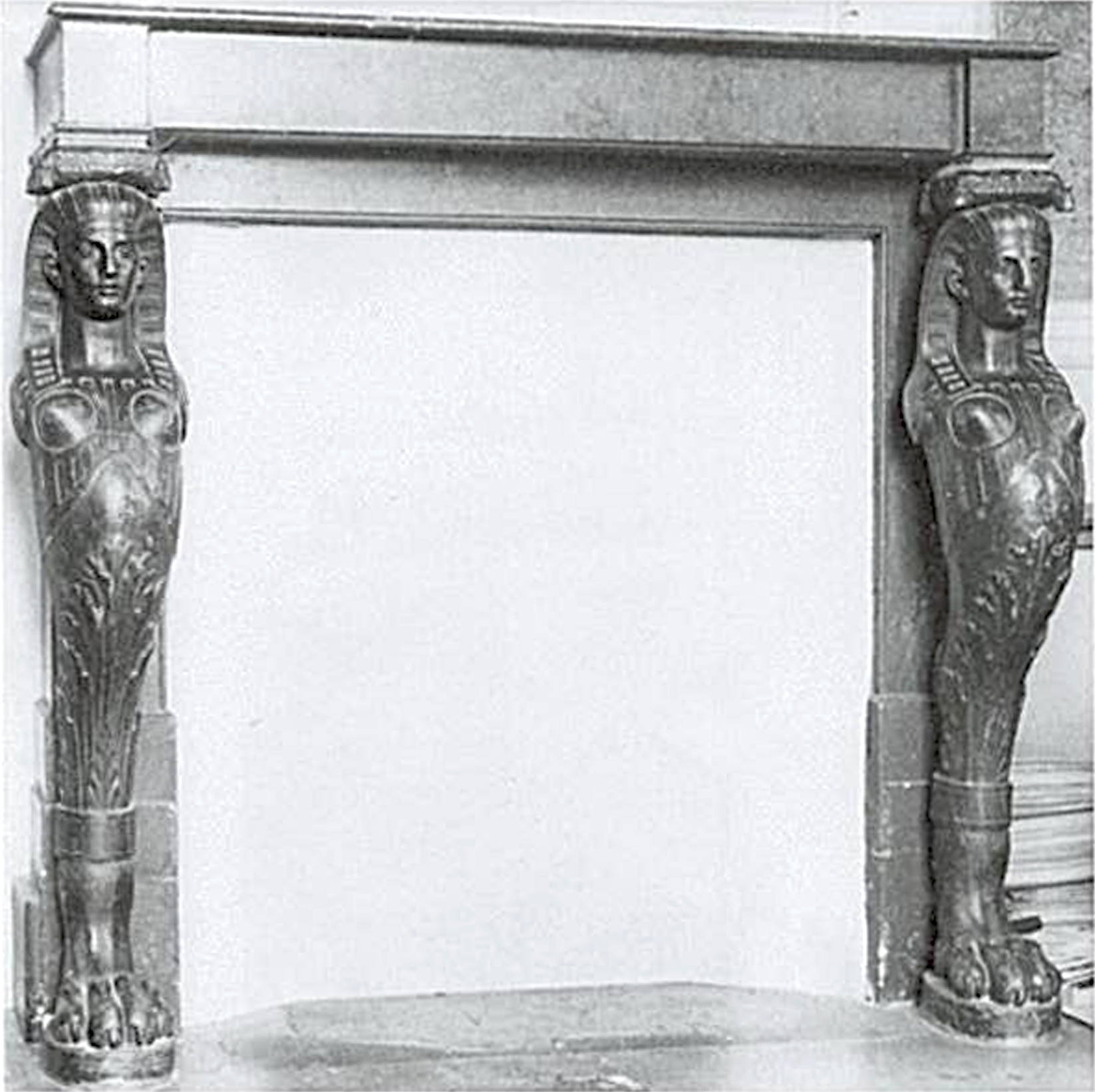 At the beginning of the Consulate, Lignereux also distributed a variant of this “chimera”, with a more hieratic face, and shorter, more regular and stylised curls, ornamented with a smooth nemes with no stripes or cobra-uraeus, and presenting variants in the bodice and the arabesque motifs enhancing it. The few known items of furniture with this model include a noteworthy centre table similar to this one, with lavish gilt bronze capitals, a frieze of palmettes and sorbels and a group composed of a vase flanked by Egyptians in the centre of the stretcher. Probably bought in Paris by Tsar Paul I before 1801, this table is now in the Hermitage Museum in Saint Petersburg.