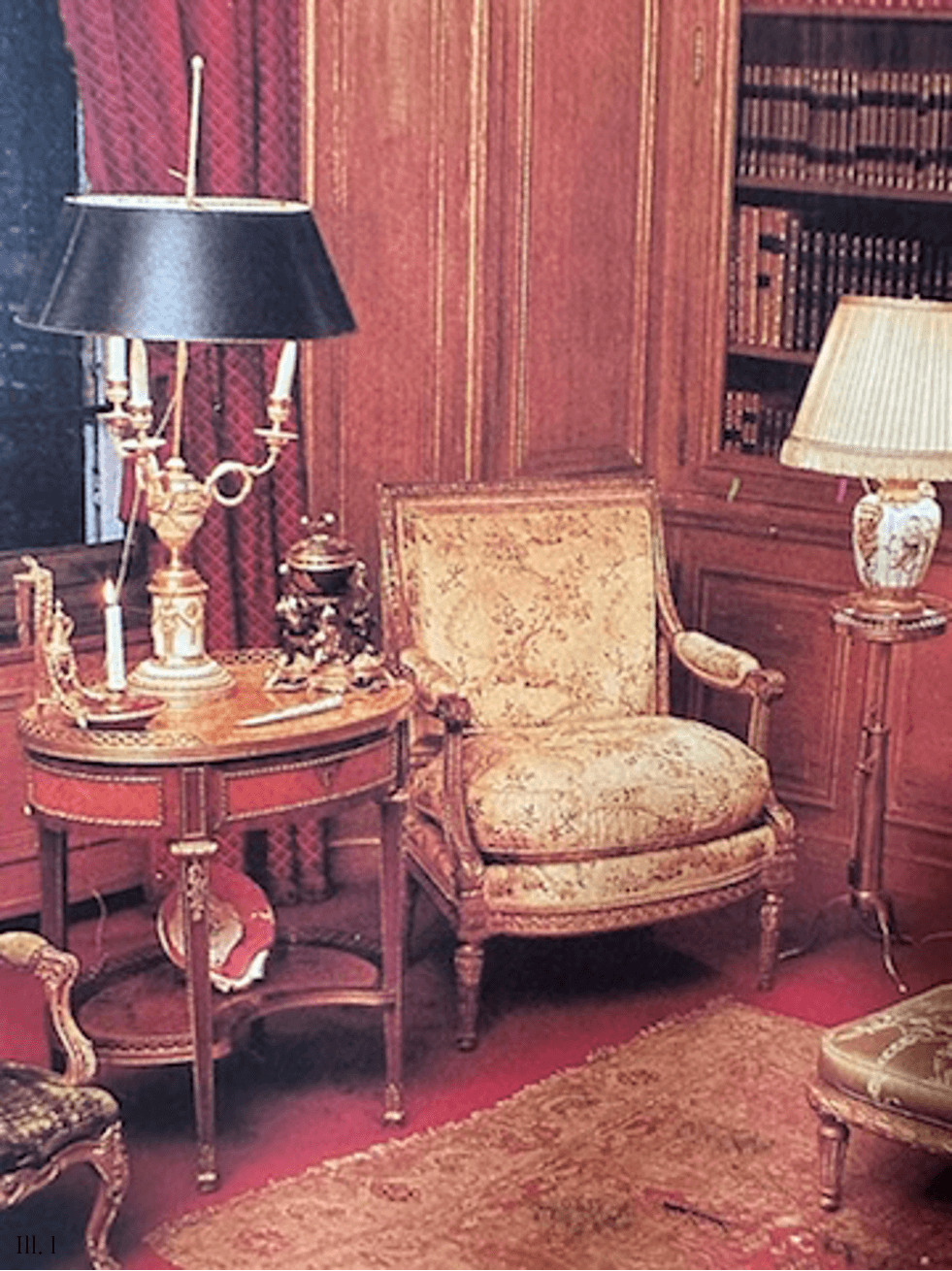 1. Vue de notre fauteuil ornant l’hôtel Lambert en 1977, reproduit dans l’ouvrage de Claude Frégnac, Belles demeures de Paris 16e – 19e siècle, Paris, 1977.