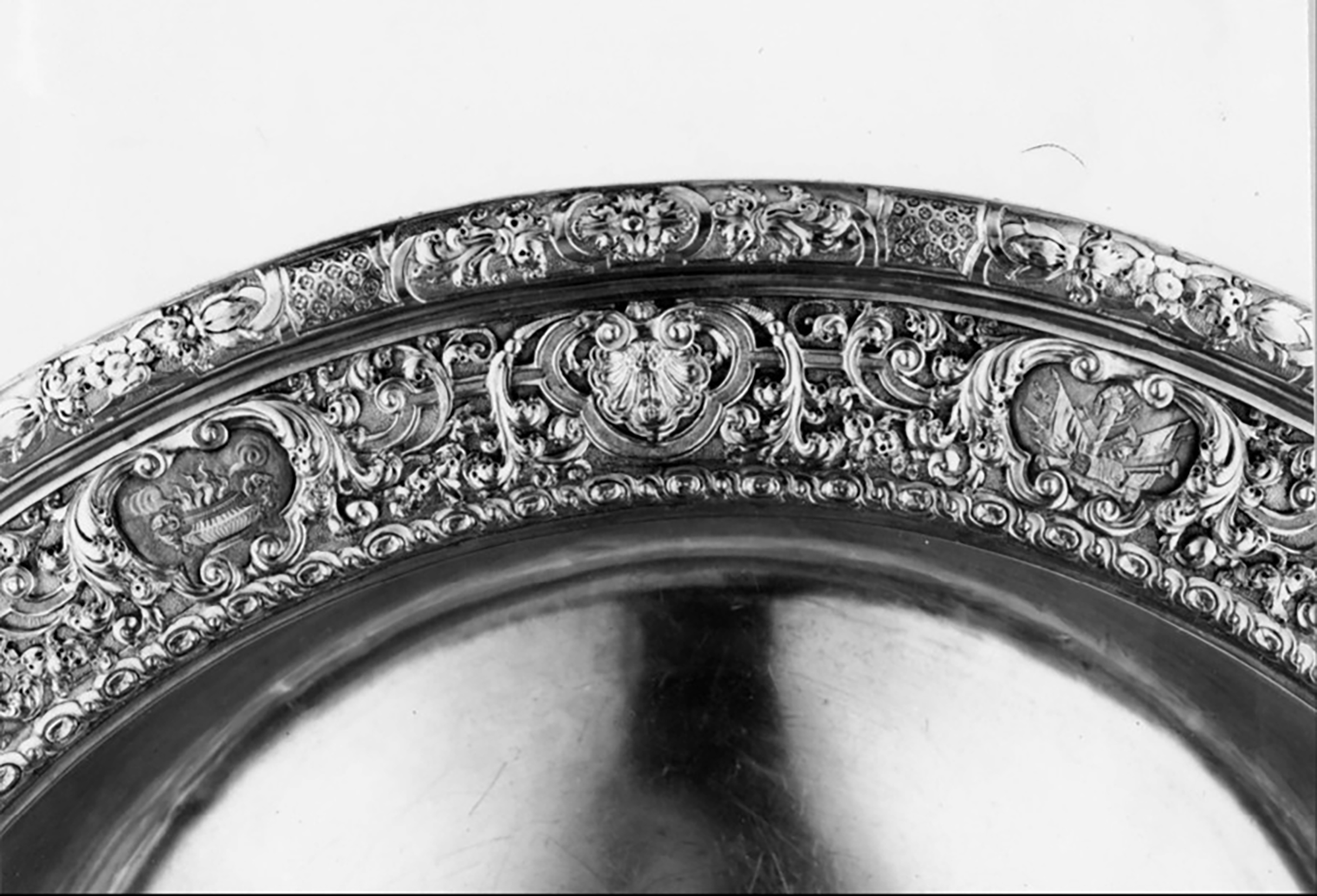 Si cette pièce, apparemment extraordinaire et révélatrice des débuts de l’orfèvre, n’a jamais pu être identifiée, on pourrait cependant voir une évocation de celle-ci dans le somptueux bassin circulaire exécuté par Crespin deux ans plus tôt, en 1722-1723, et acquis en 1969 par le British Museum, provenant de la collection de Peter Wilding.