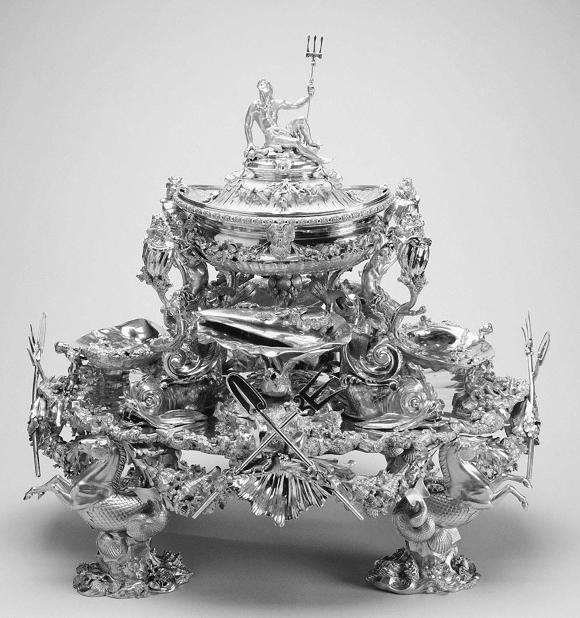 Crespin atteignit l’apogée de sa carrière dans les années 1740, année aux cours desquelles il adopta un style rococo raffiné. C’est au cours de cette période faste qu’il réalisa notamment, en argent doré, en collaboration avec son confrère huguenot Nicholas Sprimont (1716-71), et en incorporant des éléments antérieurs portant le poinçon de l’orfèvre turinois Andrea Boucheron (1701-1761), l’extraordinaire surtout couronné de la figure de Neptune, très certainement pour le compte du prince de Galle, aujourd’hui conservé dans les collections royales anglaises. De la même époque date la terrine aux chèvres exécutée par Crespin pour le compte de Charles Seymour (1662-1748), duc de Somerset, dont elle porte le blason familial, appartenant au Toledo Museum of Art, dans l’Ohio. Ces deux œuvres majeures révèlent toutes deux une qualité d’exécution à la hauteur de la très grande originalité de leur dessin.