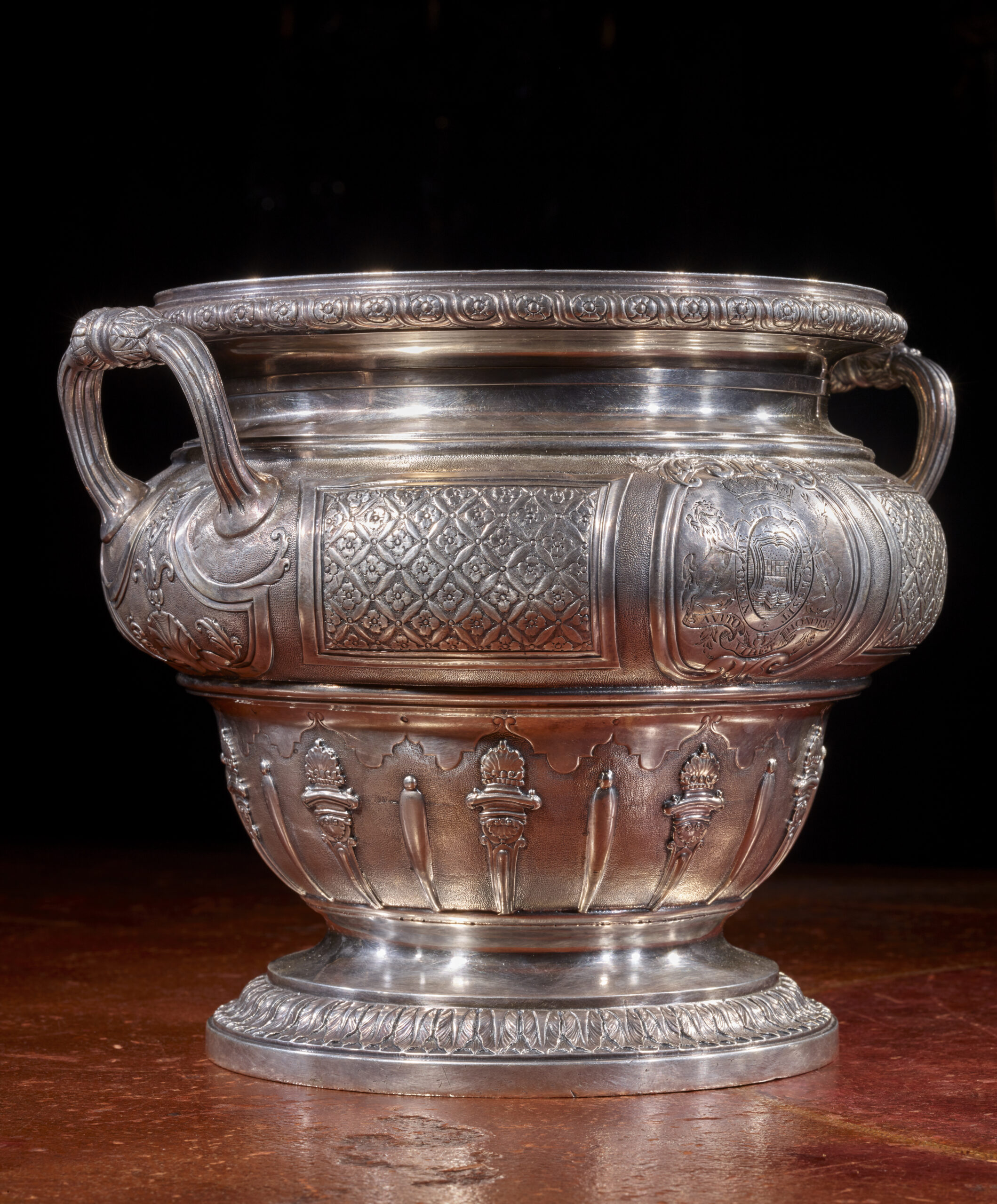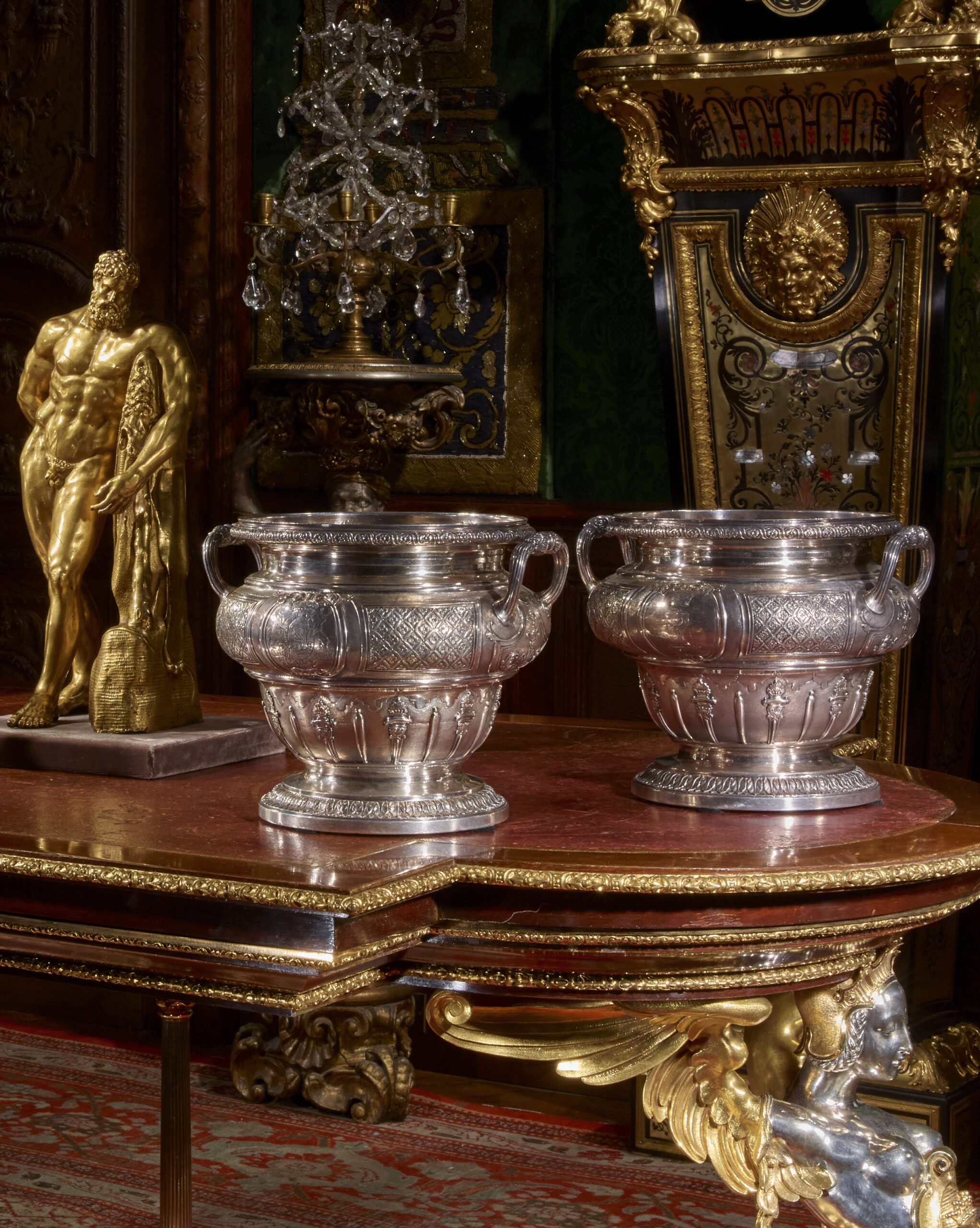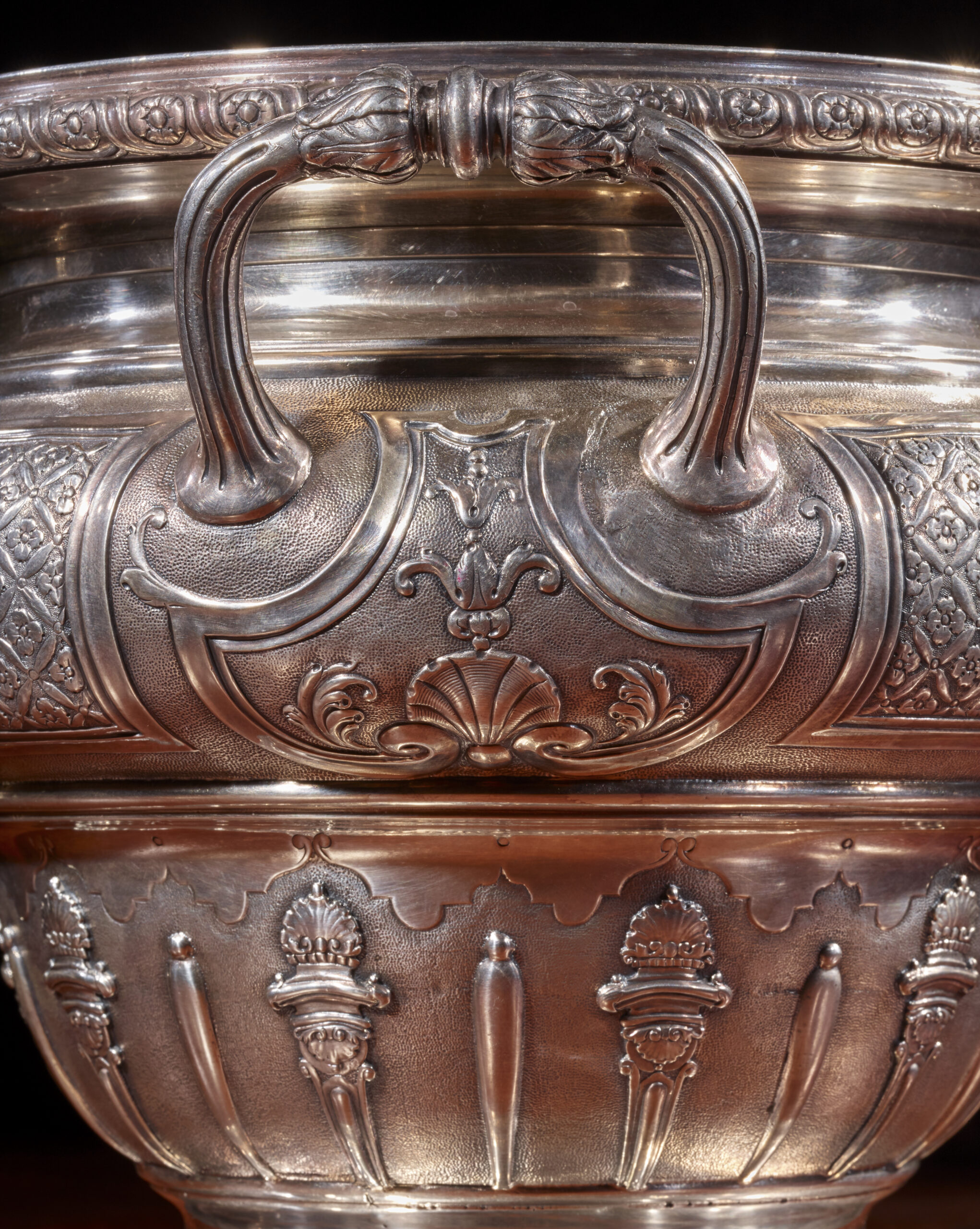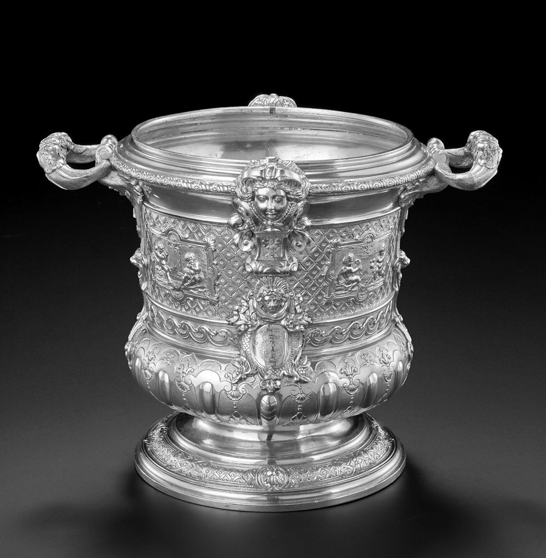 Paul Crespin compta parmi les plus importants orfèvres actifs à Londres au cours de la première moitié du XVIIIe siècle, au côté de Paul de Lamerie (1688-1751), émigré huguenot comme lui, avec lequel il collabora à plusieurs reprises, et rivalisa même à l’apogée de sa carrière. Son œuvre, d’une inspiration toujours remarquable, fut d’une qualité exceptionnelle, et Crespin compta, à ce titre, parmi ses clients, quelques-uns des plus importants personnages de son temps, en particulier le roi Jean V de Portugal (1689-1750) ; S.A.R. le prince de Galle, Frederick (1707-1751), fils aîné du roi George II et père du futur George III ; Sir Robert Walpole (1676-1745), 1er comte d’Orford et Premier ministre de Grande-Bretagne de 1721 à 1742 ; Charles Spencer (1706-1758), 3e duc de Marlborough ; William Bentinck (1709-1762), 2e duc de Portland, qui était son propriétaire et pour lequel il fournit d’importantes quantités d’orfèvrerie de table pendant plus de vingt ans ; William Cavendish (1698-1755), 3e duc de Devonshire ; Henry Fiennes Pelham-Clinton (1720-1794), 9e comte de Lincoln et 2e duc de Newcastle-under-Lyne ; Philip Dormer Stanhope (1694-1773), 4e comte de Chesterfield, qui fut ambassadeur du roi George II à la cour de La Haye de 1728 à 1732 ; Lionel Tollemache (1708-1770), 4e comte de Dysart ; Richard Temple (1675-1749), 1er vicomte Cobham ; Charles Townshend (1700-1764), 3e vicomte Townshend, à propos duquel un manuscrit conservé dans les archives de la Goldsmiths’ Company recense toutes les pièces d’orfèvrerie que Crespin exécuta pour lui entre 1740 et 1759 ; et John Stuart (1713-1792), 3e comte de Bute et futur Premier ministre de Grande-Bretagne, qui fut le propriétaire de la paire de seaux à rafraîchir présentés ici.