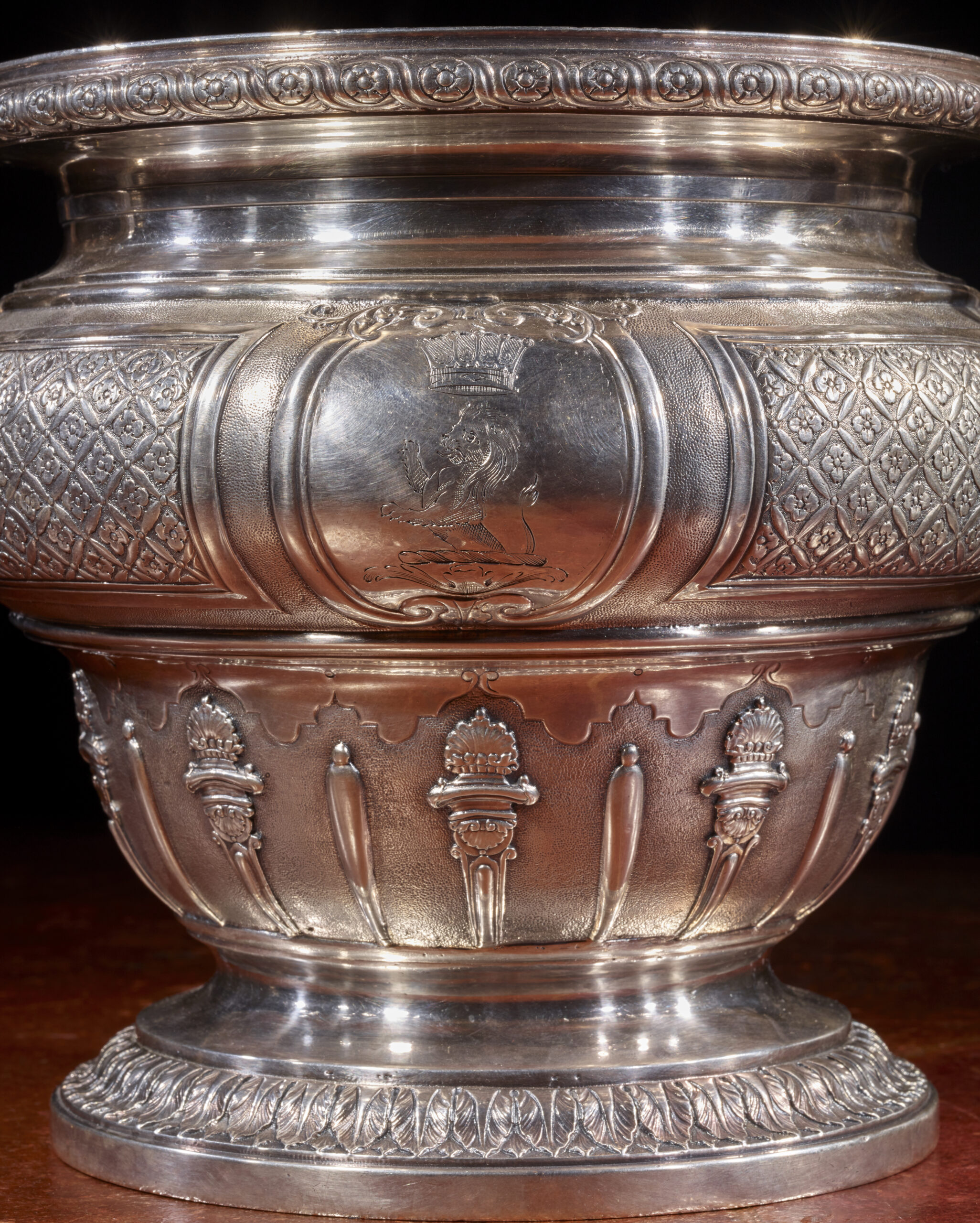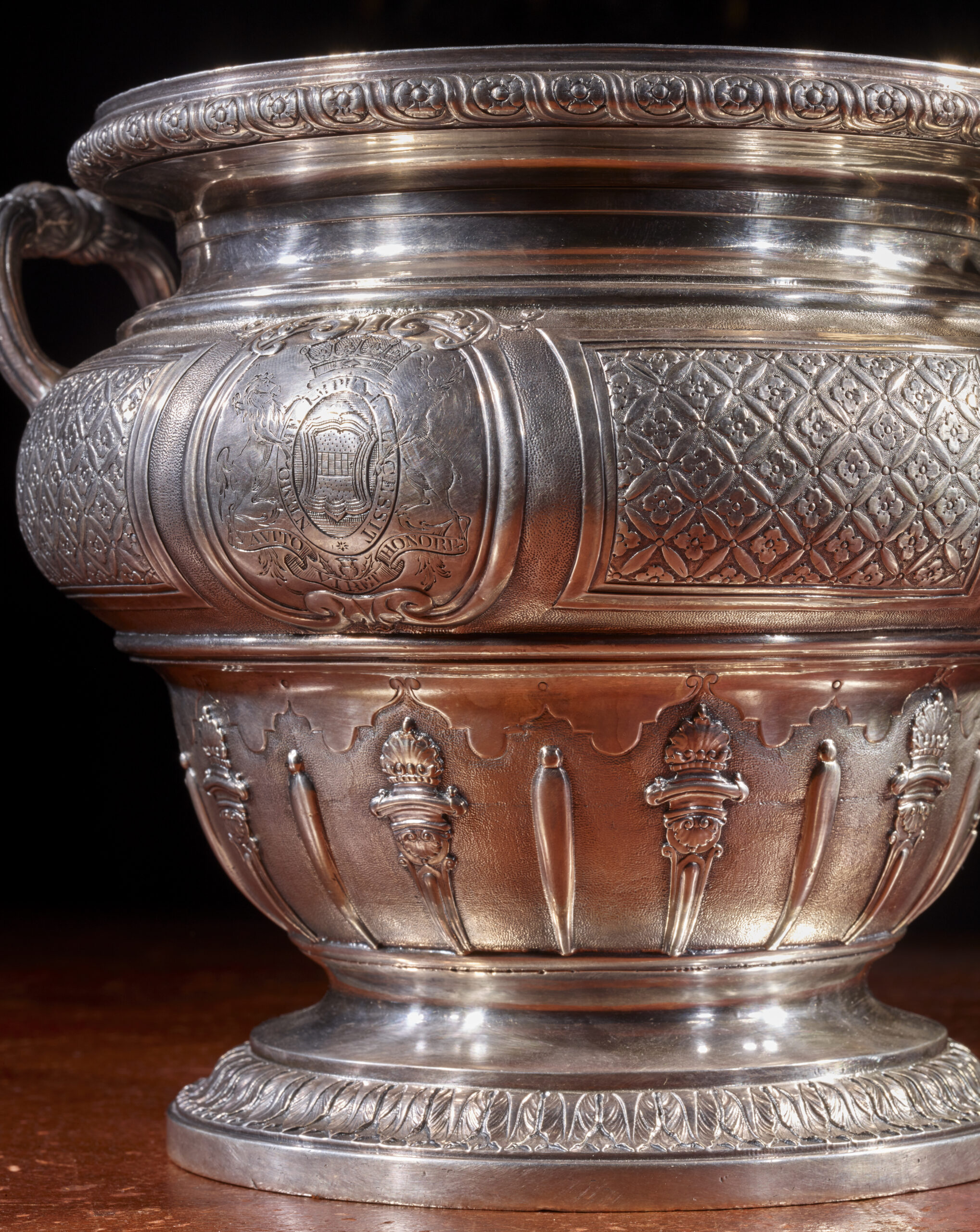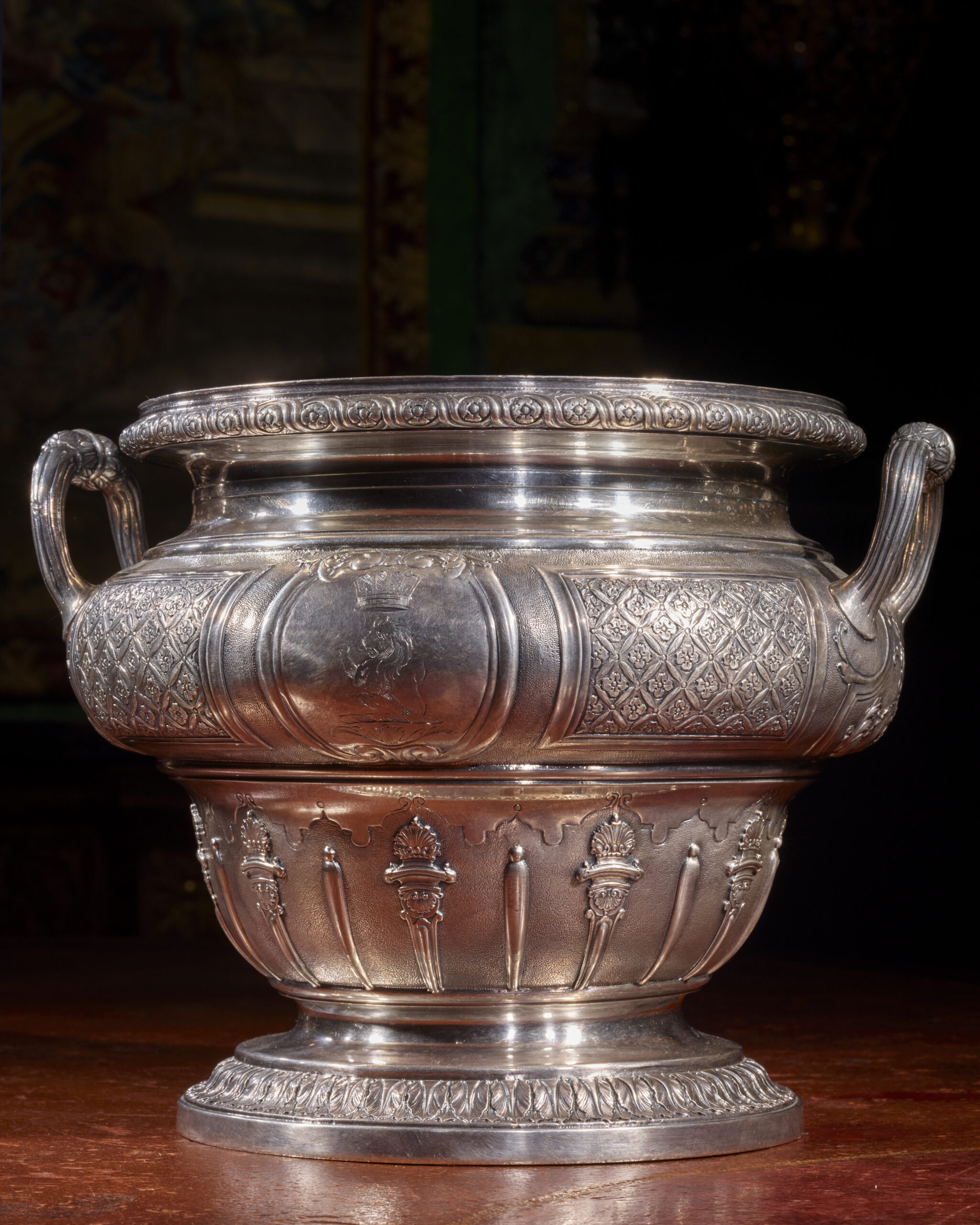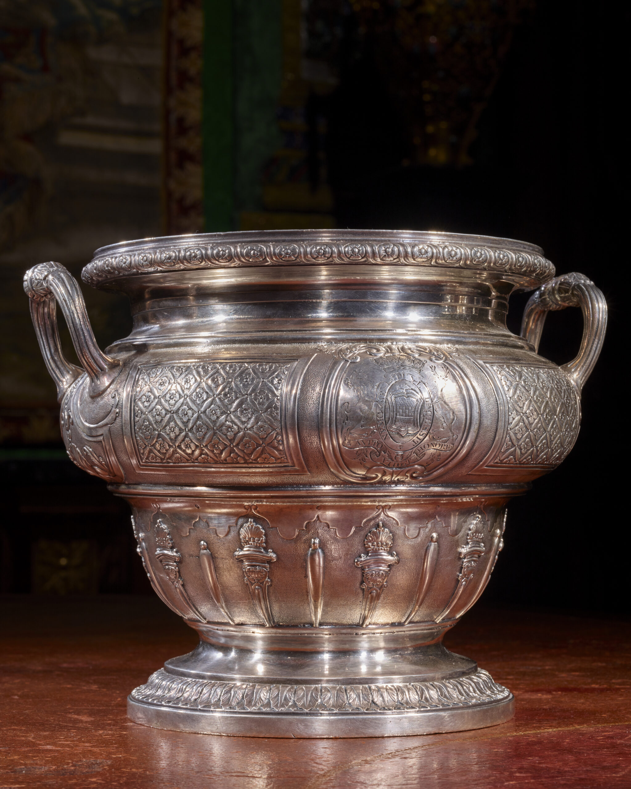 Paul Crespin compta parmi les plus importants orfèvres actifs à Londres au cours de la première moitié du XVIIIe siècle, au côté de Paul de Lamerie (1688-1751), émigré huguenot comme lui, avec lequel il collabora à plusieurs reprises, et rivalisa même à l’apogée de sa carrière. Son œuvre, d’une inspiration toujours remarquable, fut d’une qualité exceptionnelle, et Crespin compta, à ce titre, parmi ses clients, quelques-uns des plus importants personnages de son temps, en particulier le roi Jean V de Portugal (1689-1750) ; S.A.R. le prince de Galle, Frederick (1707-1751), fils aîné du roi George II et père du futur George III ; Sir Robert Walpole (1676-1745), 1er comte d’Orford et Premier ministre de Grande-Bretagne de 1721 à 1742 ; Charles Spencer (1706-1758), 3e duc de Marlborough ; William Bentinck (1709-1762), 2e duc de Portland, qui était son propriétaire et pour lequel il fournit d’importantes quantités d’orfèvrerie de table pendant plus de vingt ans ; William Cavendish (1698-1755), 3e duc de Devonshire ; Henry Fiennes Pelham-Clinton (1720-1794), 9e comte de Lincoln et 2e duc de Newcastle-under-Lyne ; Philip Dormer Stanhope (1694-1773), 4e comte de Chesterfield, qui fut ambassadeur du roi George II à la cour de La Haye de 1728 à 1732 ; Lionel Tollemache (1708-1770), 4e comte de Dysart ; Richard Temple (1675-1749), 1er vicomte Cobham ; Charles Townshend (1700-1764), 3e vicomte Townshend, à propos duquel un manuscrit conservé dans les archives de la Goldsmiths’ Company recense toutes les pièces d’orfèvrerie que Crespin exécuta pour lui entre 1740 et 1759 ; et John Stuart (1713-1792), 3e comte de Bute et futur Premier ministre de Grande-Bretagne, qui fut le propriétaire de la paire de seaux à rafraîchir présentés ici.