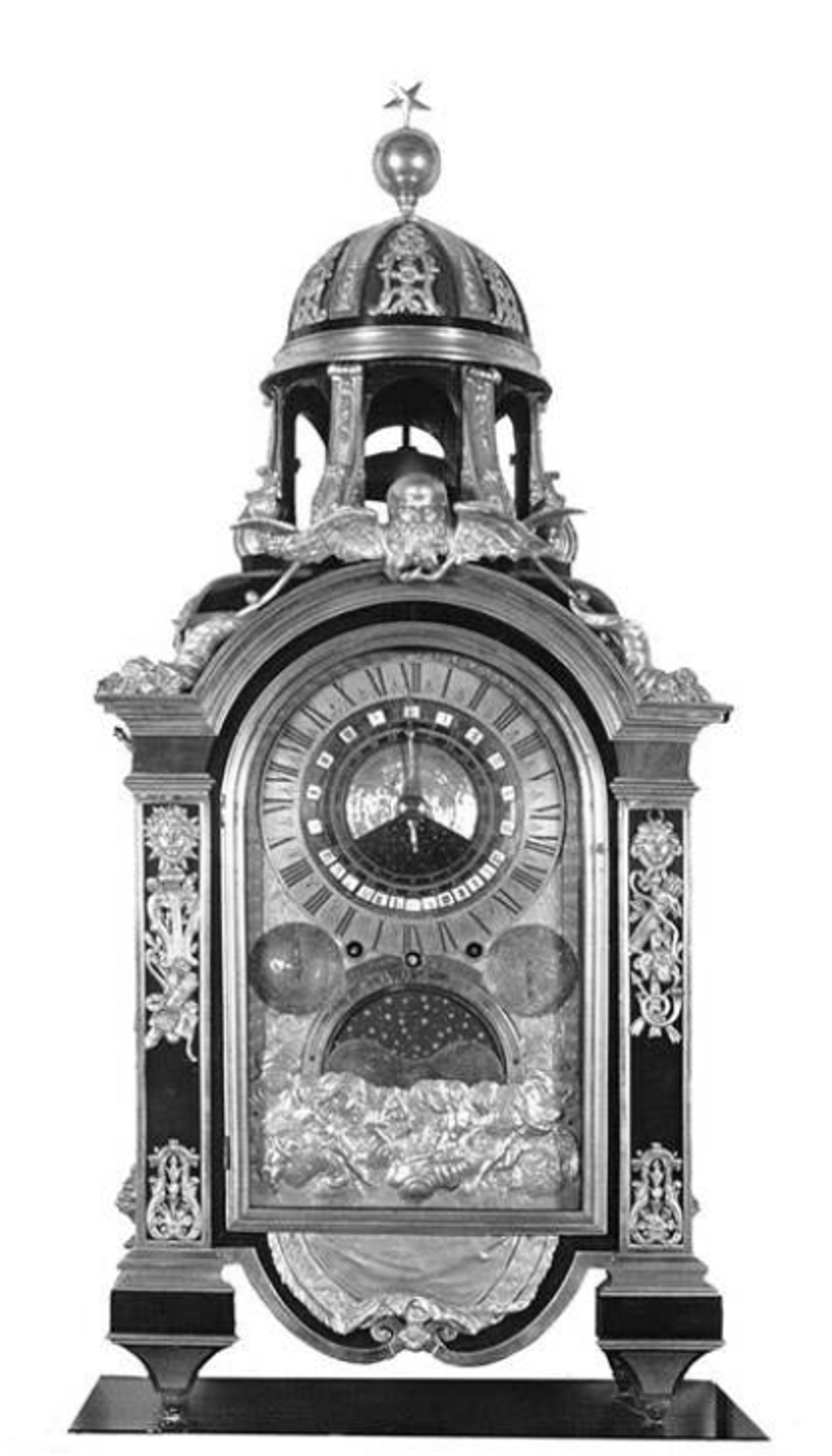 Horloge astronomique à plusieurs cadrans conçue pour le Grand Dauphin en 1710 par Pierre Fardoil, horloger à Paris. Outre les heures et les minutes, on peut lire les jours, le quantième du mois, les phases de la lune et la longueur du jour et de la nuit. Sous les cadrans, une allégorie des quatre saisons, signée Antoine Coypel, fut fondue comme les autres décors en bronze doré par Jacques Caffieri. Classé Monument historique au titre objet le 22 octobre 1909.