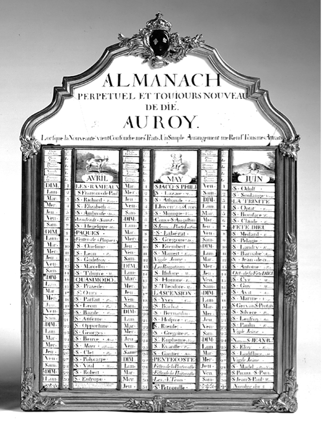 Entre 1741 et 1742, il exécuta pour Louis XV, à l’âge de 36 ans, un extraordinaire Almanach perpétuel et toujours nouveau dédié au Roy, se déclinant en quatre tableaux trimestriels, émaillés à fond blanc, à riches bordures moulurées de bronze doré et couronnées des armes de France, aujourd’hui conservé à la Wallace Collection, à Londres.