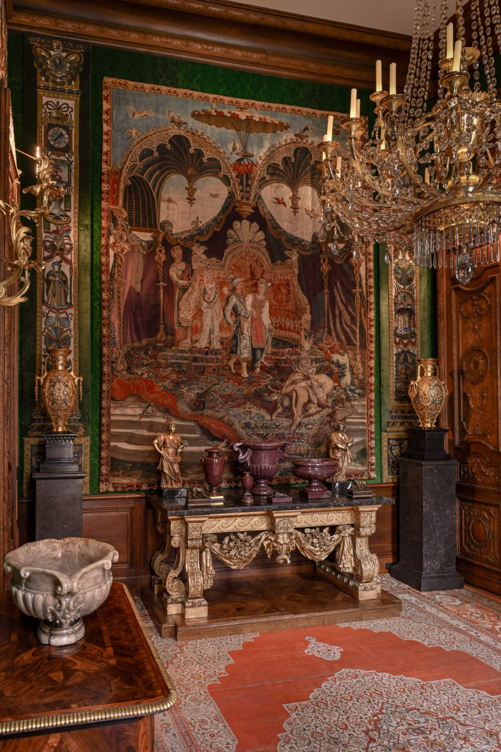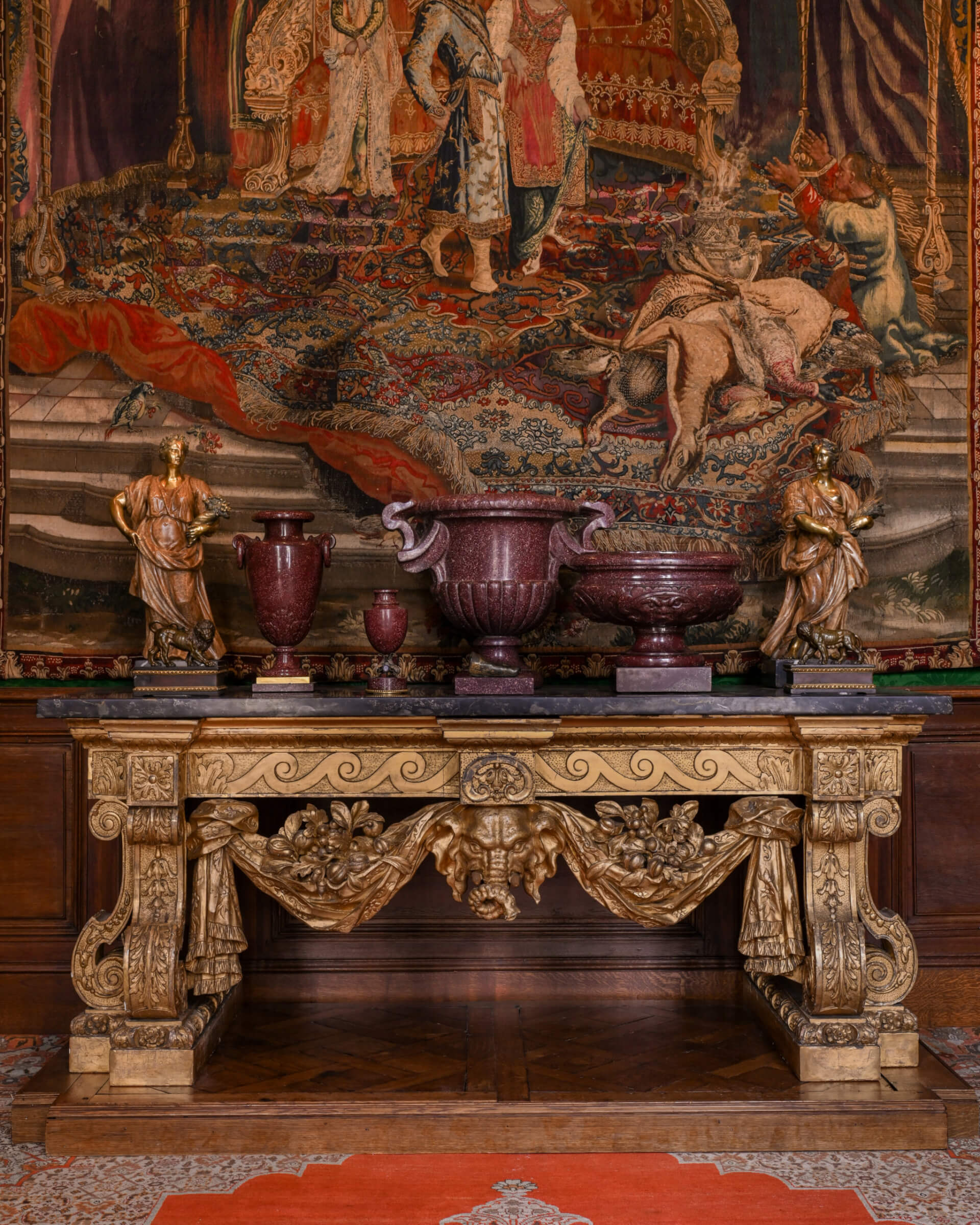 PROVENANCE : Collection d’Edward George Villiers Stanley (1865-1948), 17e comte de Derby, et de son épouse Alice Maud Olivia Montagu (1862-1957), comtesse de Derby, fille du 7e duc de Manchester, et Lady of the Bedchamber de la reine Alexandra de Danemark (1844-1925), épouse du roi Édouard VII d’Angleterre (1841-1910) de 1901 à 1910, dans leur résidence de Coworth Park, à Sunningdale, près d’Ascot, dans le comté royal du Berkshire, à proximité du château de Windsor, au sud-ouest de Londres ; vente après décès de la comtesse de Derby: Catalogue of the contents of Coworth Park, Sunningdale, Berks., sold by order of the beneficiaries of the late Alice, Countess of Derby, including old pictures and engravings, English and French 18th century furniture, decorative China en dinner services, a fine Savonnerie carpet, eastern rugs and carpets, and the household furnishings and appointments, par Christie, Manson & Woods, à Londres, les 14 et 15 octobre 1957, lot n° 127 ; Collection de Lady Rosemary Margaret d’Avigdor-Goldsmid (1910-1997), née Nicholl, épouse de Sir Henry Joseph d’Avigdor-Goldsmid (1909-1976), 2nd Baronet ; vente Sotheby’s à Londres, le 10 juillet 1998, lot n° 11, acquis à la vente par Ann et Gordon Getty ; Collection de la célèbre philanthrope, éditrice et paléoanthropologue Ann Getty (1941-2020), née Gilbert, et de son époux, le magnat américain du pétrole Gordon Peter Getty (né en 1933), à New York.