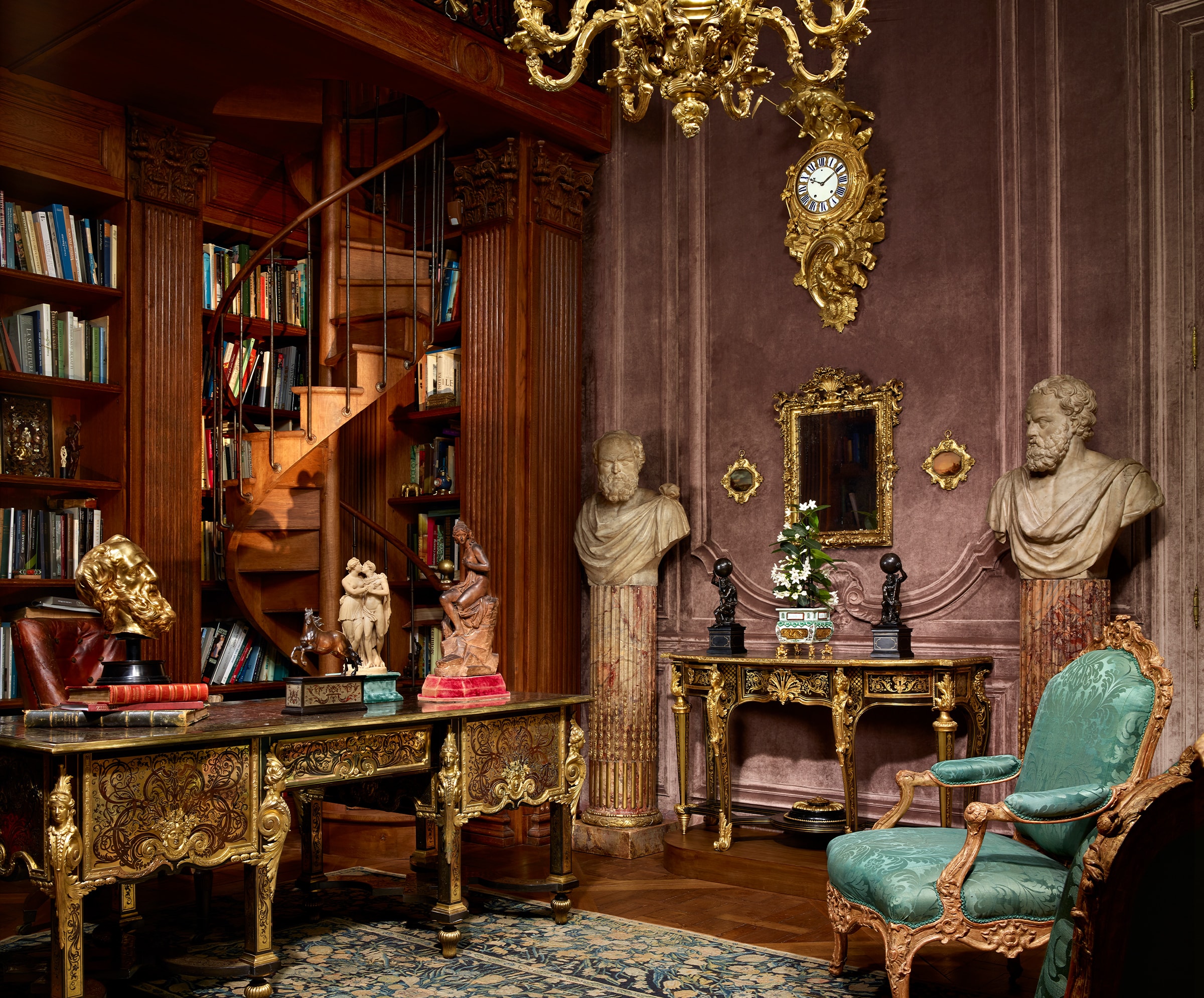 Ce lieu hautement chargé d’histoire, où un salon de l’étage noble a conservé son décor d’origine des années 1770, et où subsiste l’escalier d’honneur, avec sa rampe en fer forgé d’époque Louis XV, abrite aujourd’hui des nouveaux salons d’exposition exclusifs de la galerie Steinitz, mais aussi, au rez-de-chaussée et au deuxième étage du corps de bâtiment principal et des ailes en retour, son bureau d’études, et une partie de ses ateliers et de son équipe, réunissant, en plein cœur de Paris une somme unique de savoirs faire dans tous les domaines des métiers d’art liés au décor intérieur, aux meubles et aux arts décoratifs. Formidable clin d’œil aux « Gobelins » rêvés et créés par Bernard Steinitz à Saint-Ouen dans les années 80, cette « installation » en plein cœur de Paris n’est pas non plus sans évoquer, toutes proportions gardées, le Garde-Meuble de la Couronne, qui avait été déménagé, en 1774, place Louis XV, à quelques pas seulement du n° 6 de la rue Royale, dans le vaste bâtiment à colonnade de Gabriel affecté depuis la Révolution au Ministère de la Marine. Ce lieu prestigieux avait été spécialement construit à l’usage du Garde-Meuble, avec ses pièces d’exposition, ses logements, dont le somptueux appartement qui subsiste de nos jours de Thierry de Ville d’Avray (1732-1792), intendant et contrôleur général des Meubles de la Couronne de 1784 à sa mort, ses bureaux, ses magasins et ses ateliers…